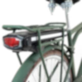 Cyklens litiumbatteriet er placeret i bagagebæreren. Det kan sagtens lade sig gøre at oplade batteriet, mens det sidder i cyklen, men det kan også tages ud og oplades et andet sted. Batteriet har kvalitetsceller af typen 18650, hvilket garanterer en lang levetid og stabil ydelse. Kapaciteten er 432 Wh, 36 V 12 Ah eller 648 Wh, 36 V 18 Ah. Rækkevidden for elcykler er altid svær at specificere, da det afhænger af en række forskellige faktorer, især hvor meget du hjælper til med at cykle, og hvilket assistanceniveau du har valgt. For at give en vejledende idé plejer vi at angive rækkevidden til ca.: 45-75 eller 75-125 km pr. opladning.