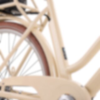 Designet på Classic-7 er gennemtænkt ned til mindste detalje. Rammens farve matcher ton-i-ton med skærme, kædeskærm og bagagebærer, hvilket skaber et ensartet og stilrent helhedsindtryk. Læderdetaljer på håndtagene og en brun saddel, som matcher de brune dæk, forstærker den retroinspirerede følelse.